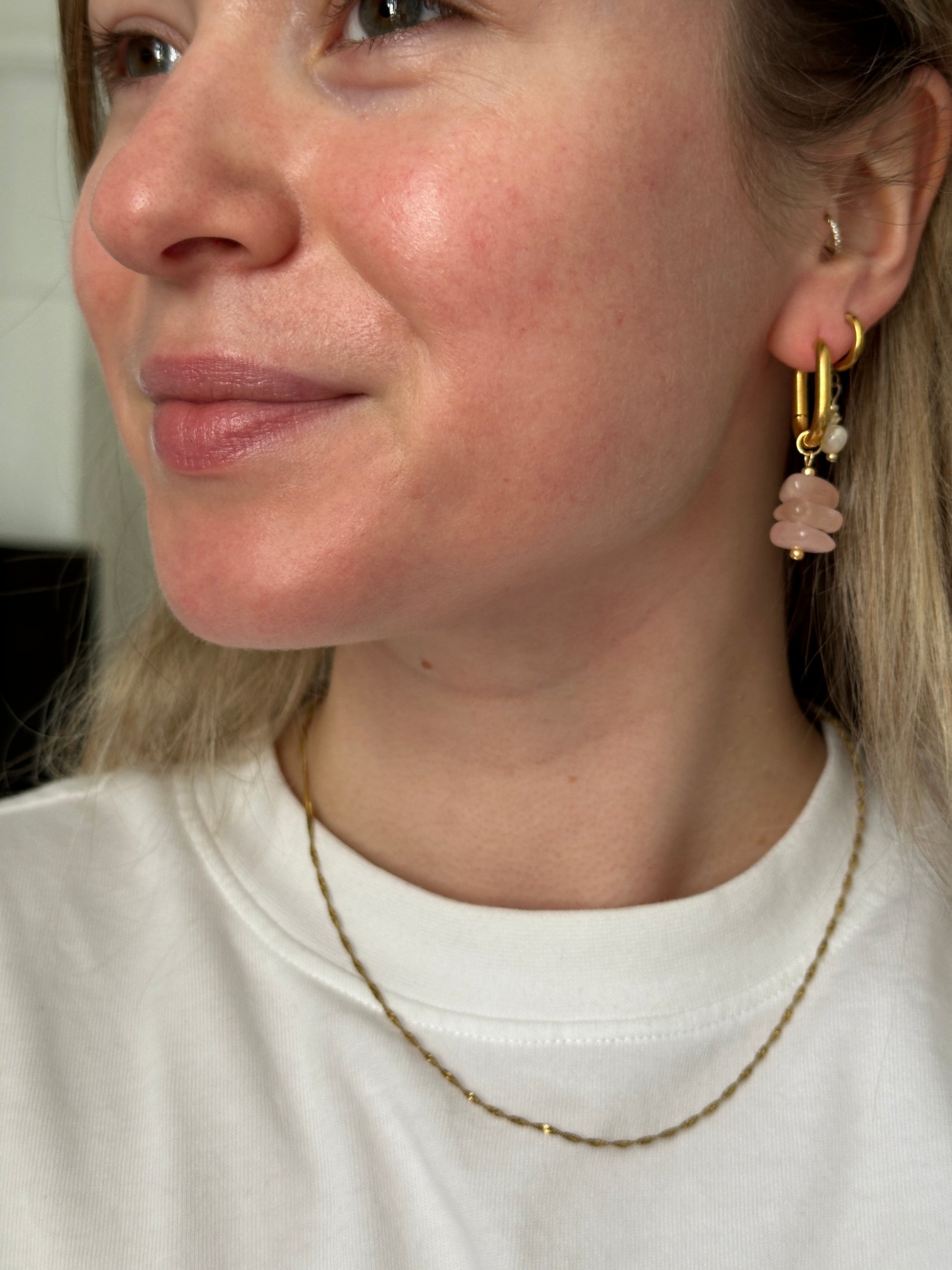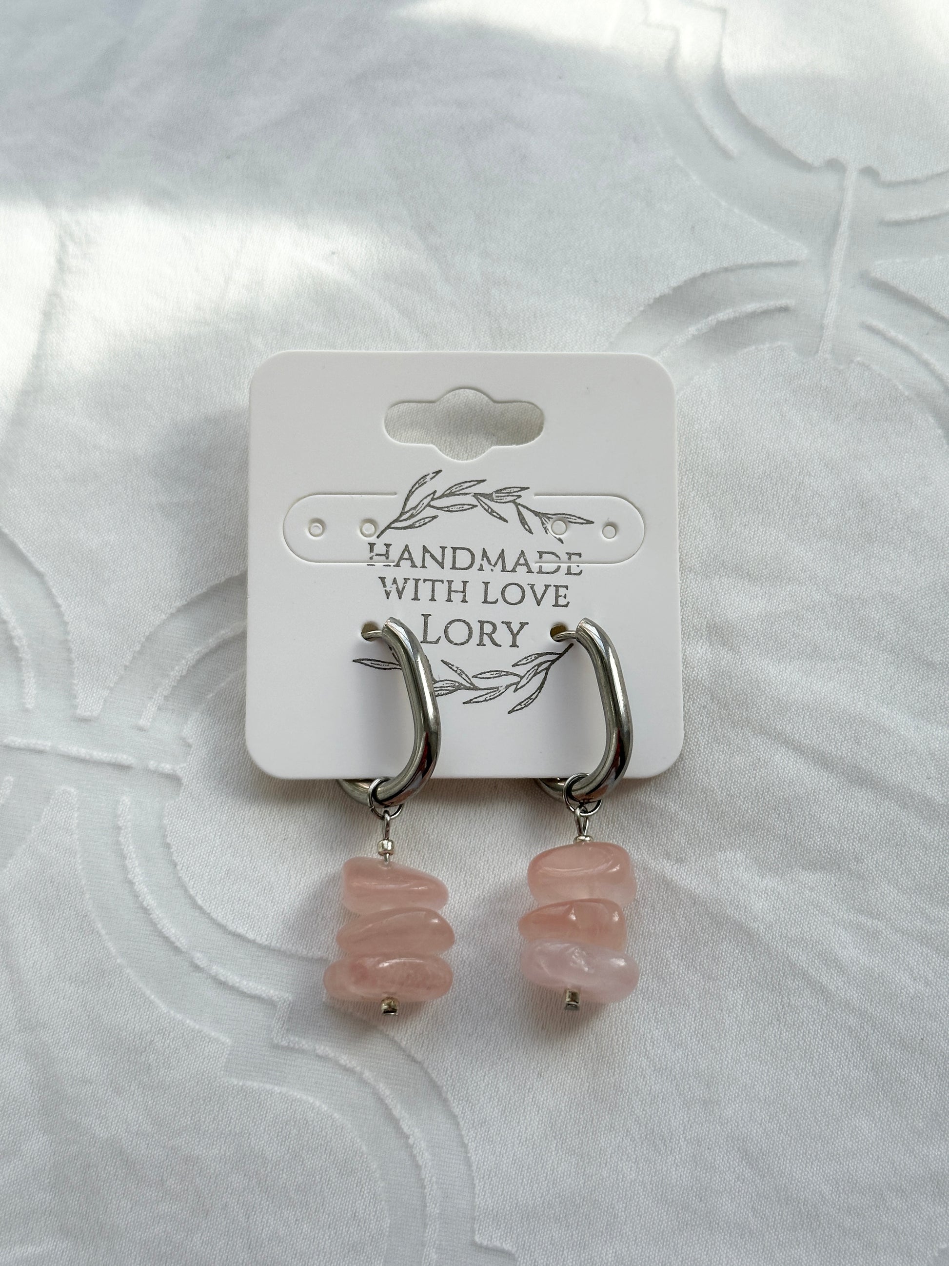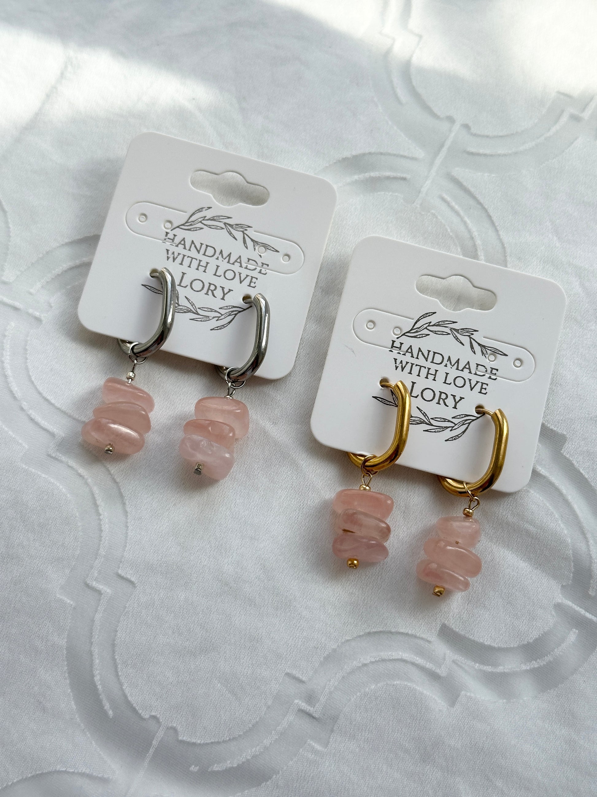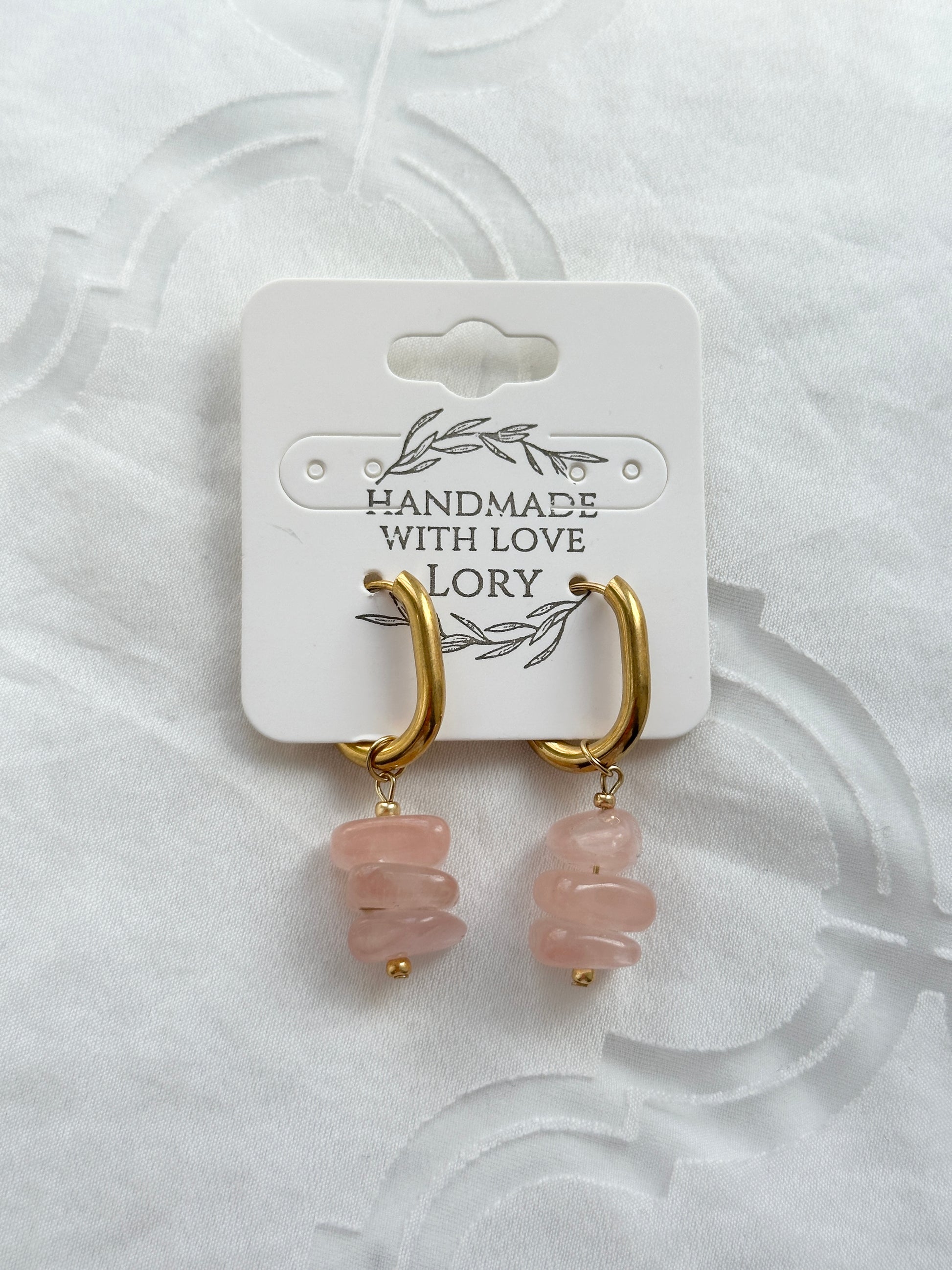 Wunderschöne Creolen mit recycelten Perlen aus Rosenquarz. 💖