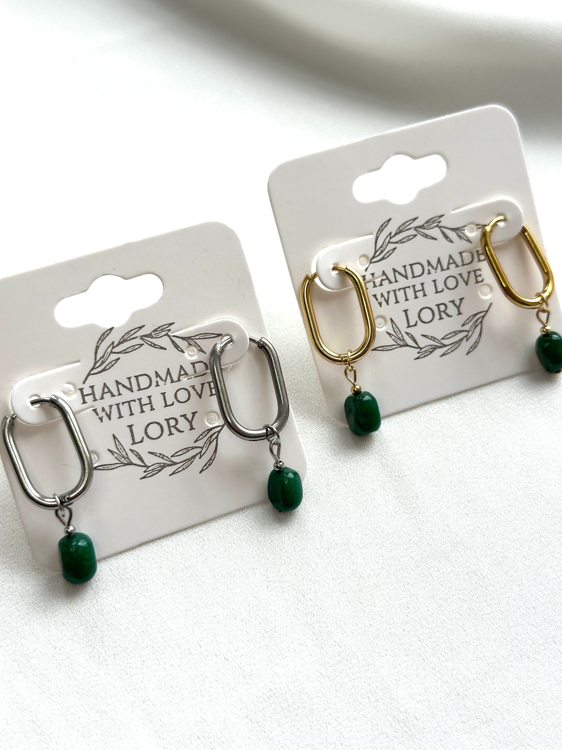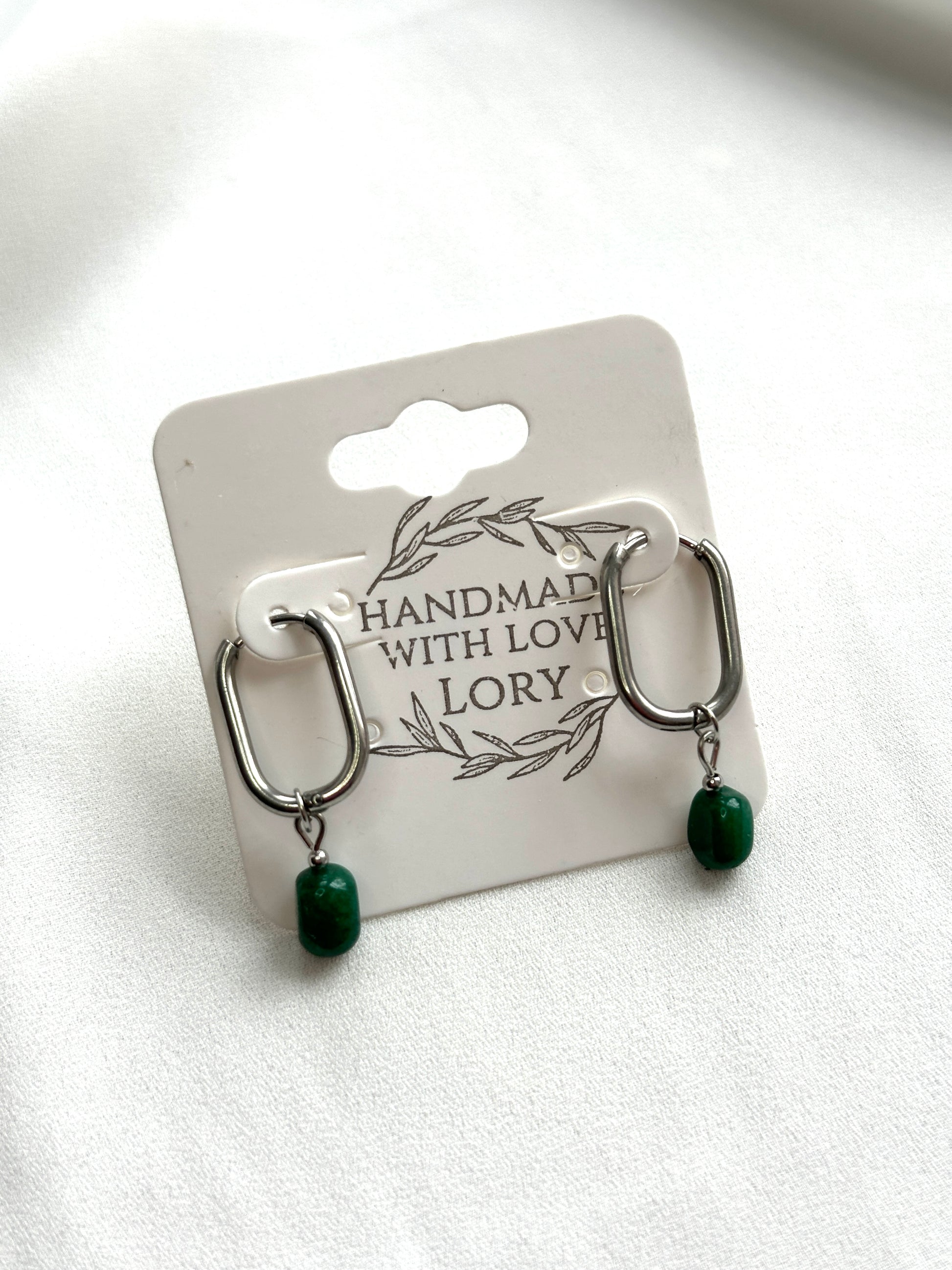 Feine Creolen mit einem kleinen Anhänger aus dunklem Aventurin.
