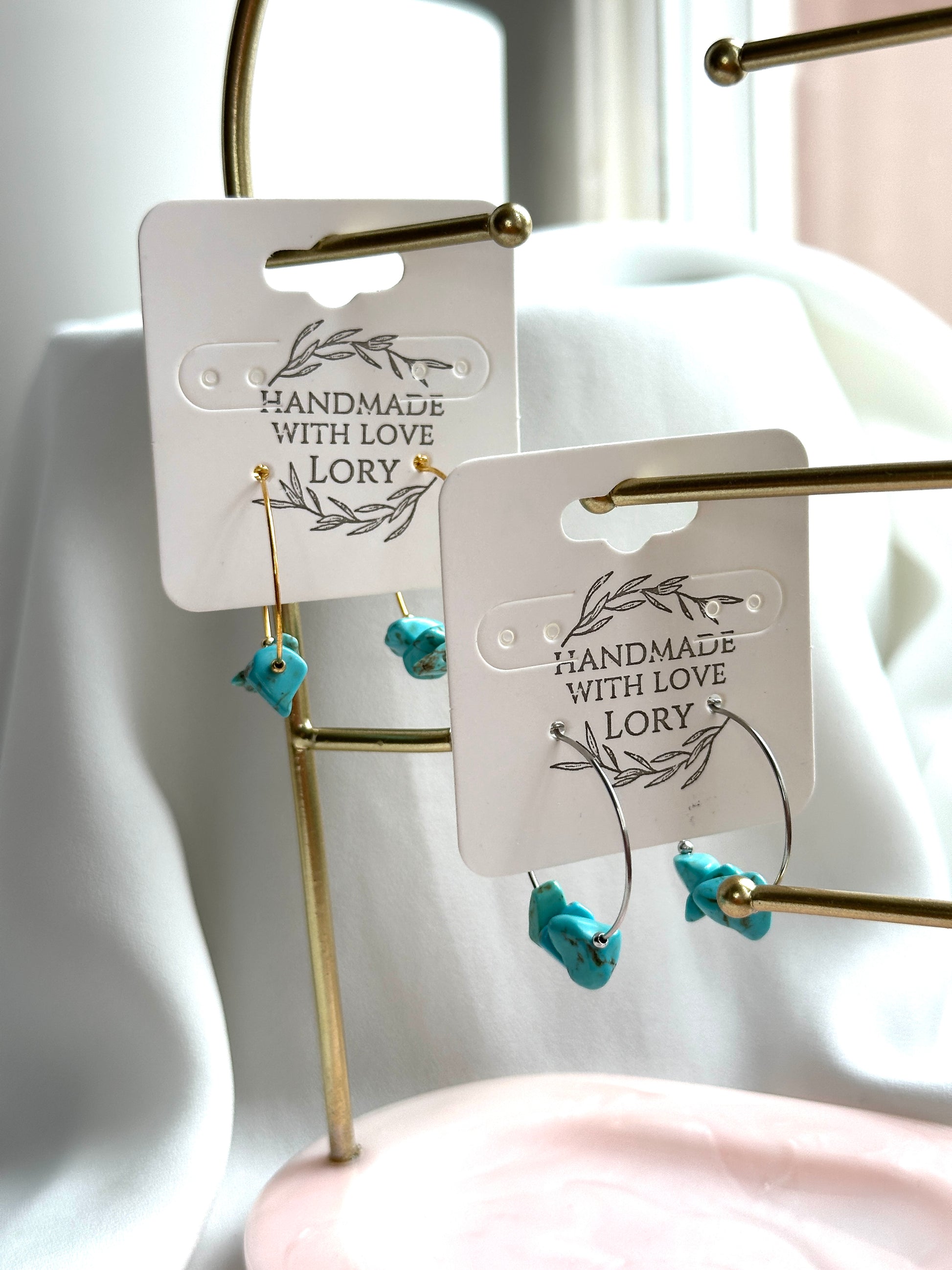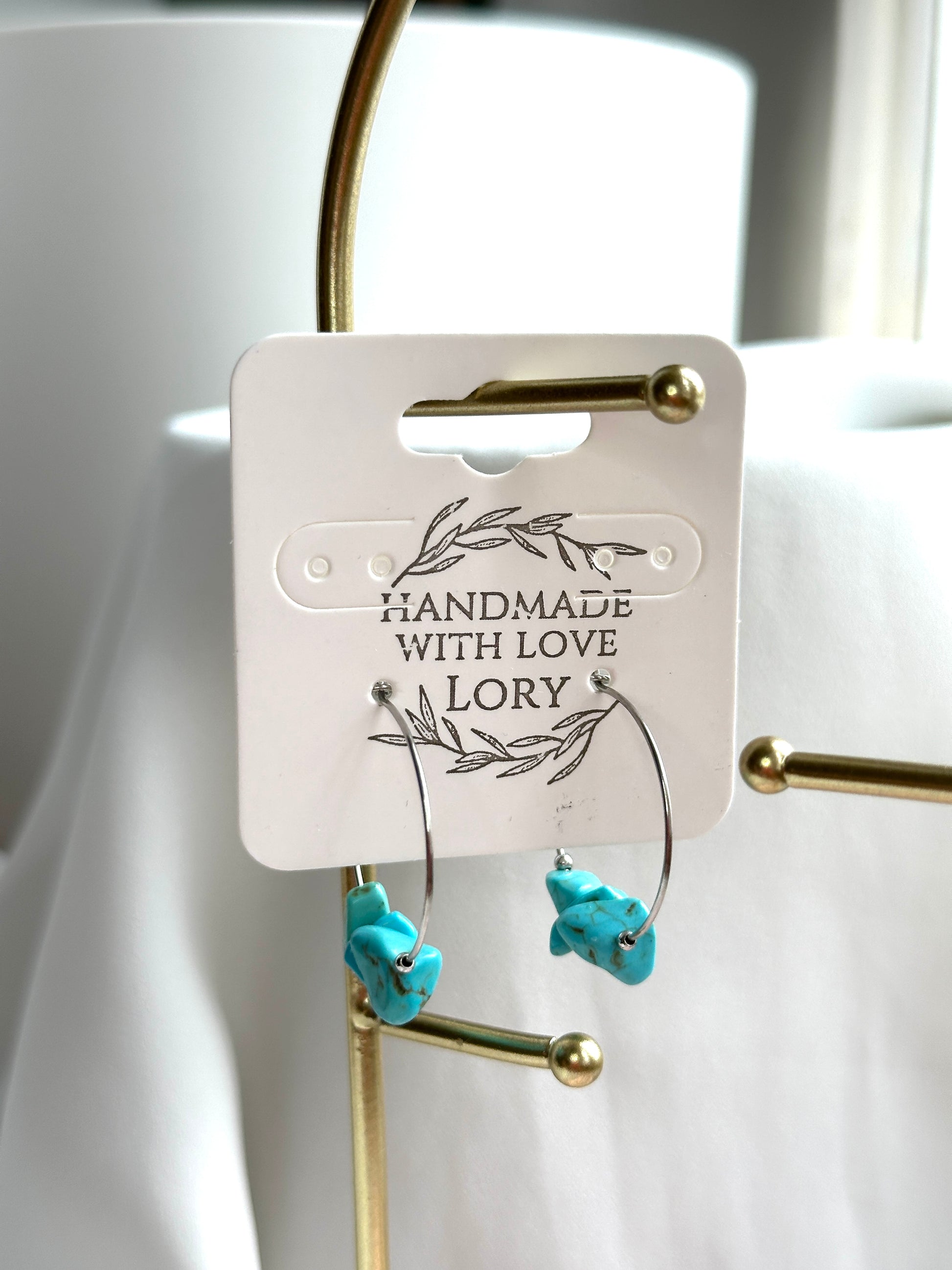 Feine Edelstahlcreolen mit Perlen aus Türkis.