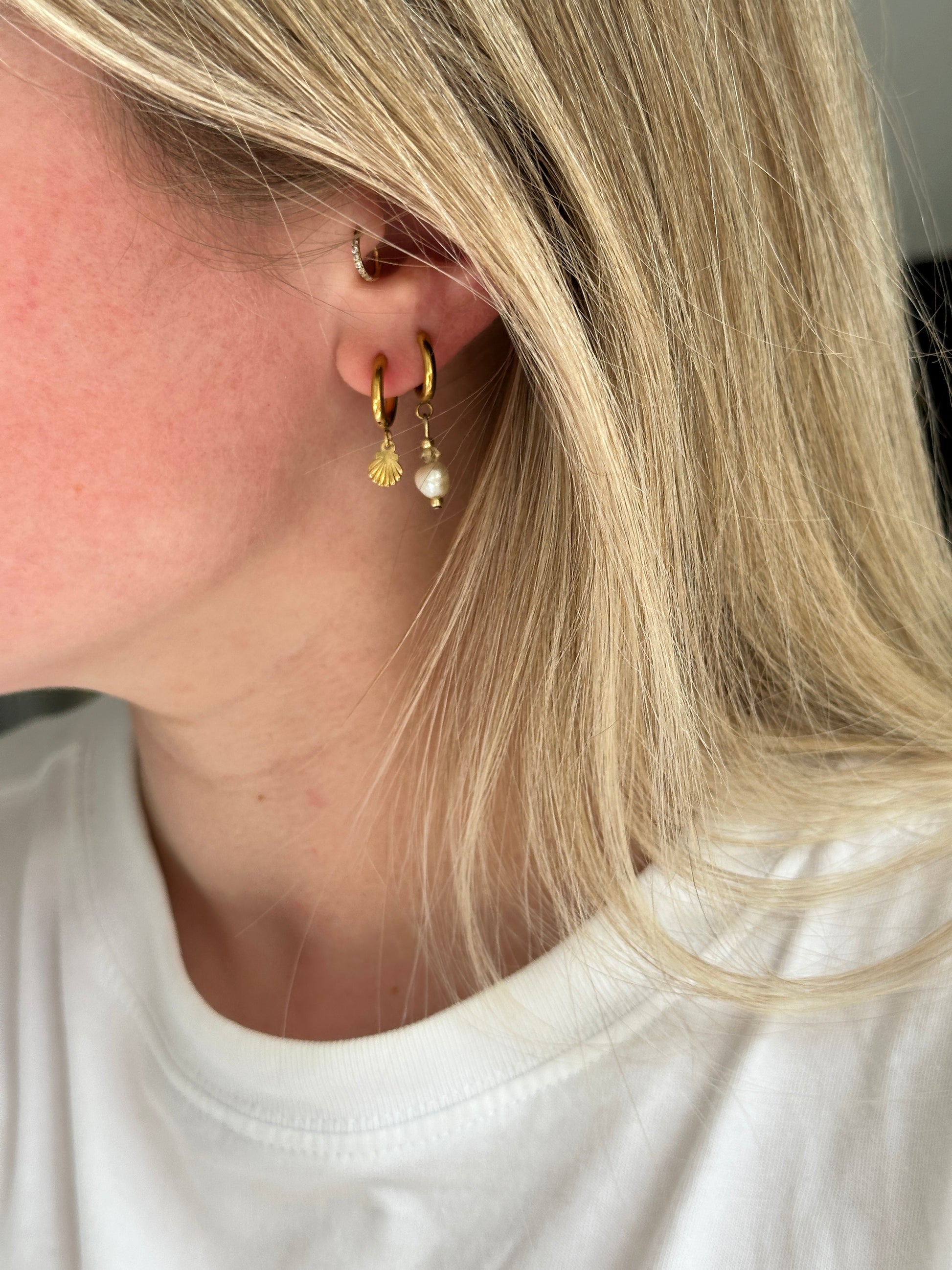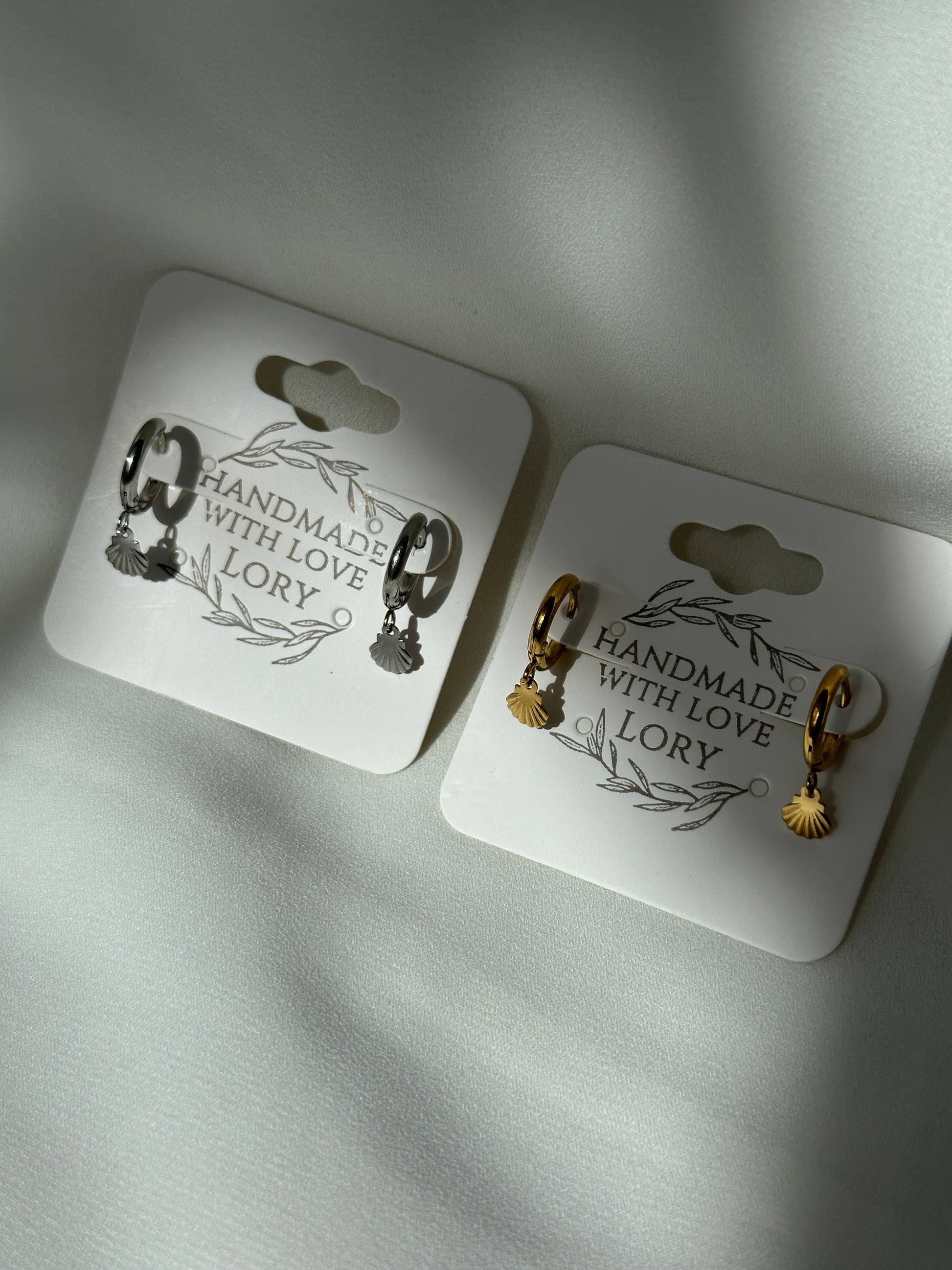 Süße Edelstahlcreolen mit kleinen Muschelanhängern. 🐚