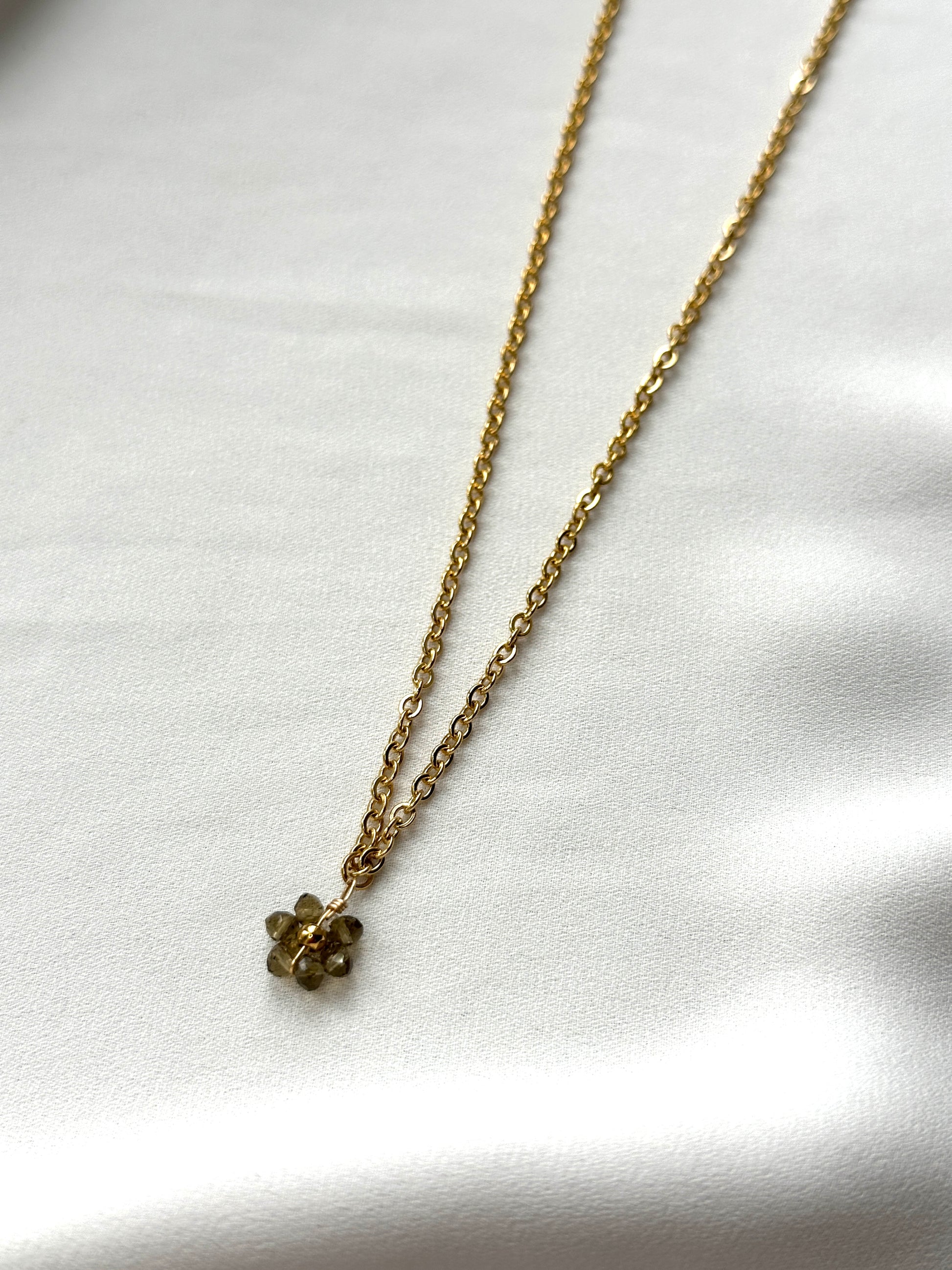 Edelstahlkette mit einem kleinen Blumenanhänger aus Perlen.
