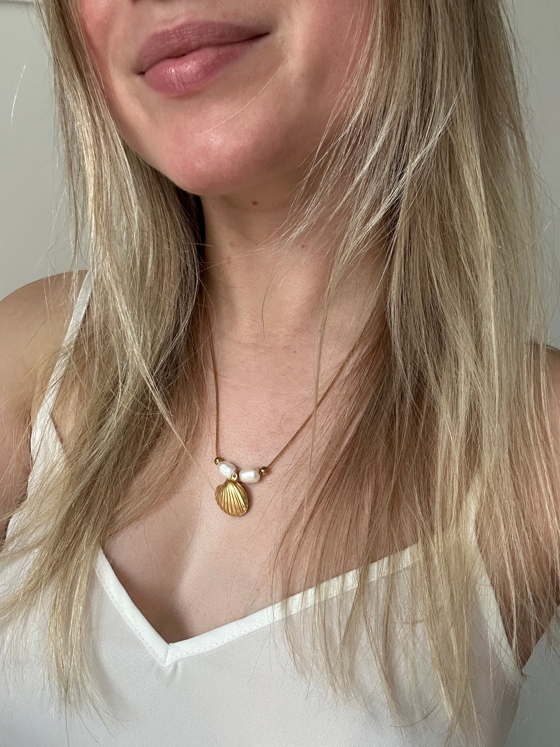 Edelstahlkette mit zwei Süßwasserperlen. 🐚✨
