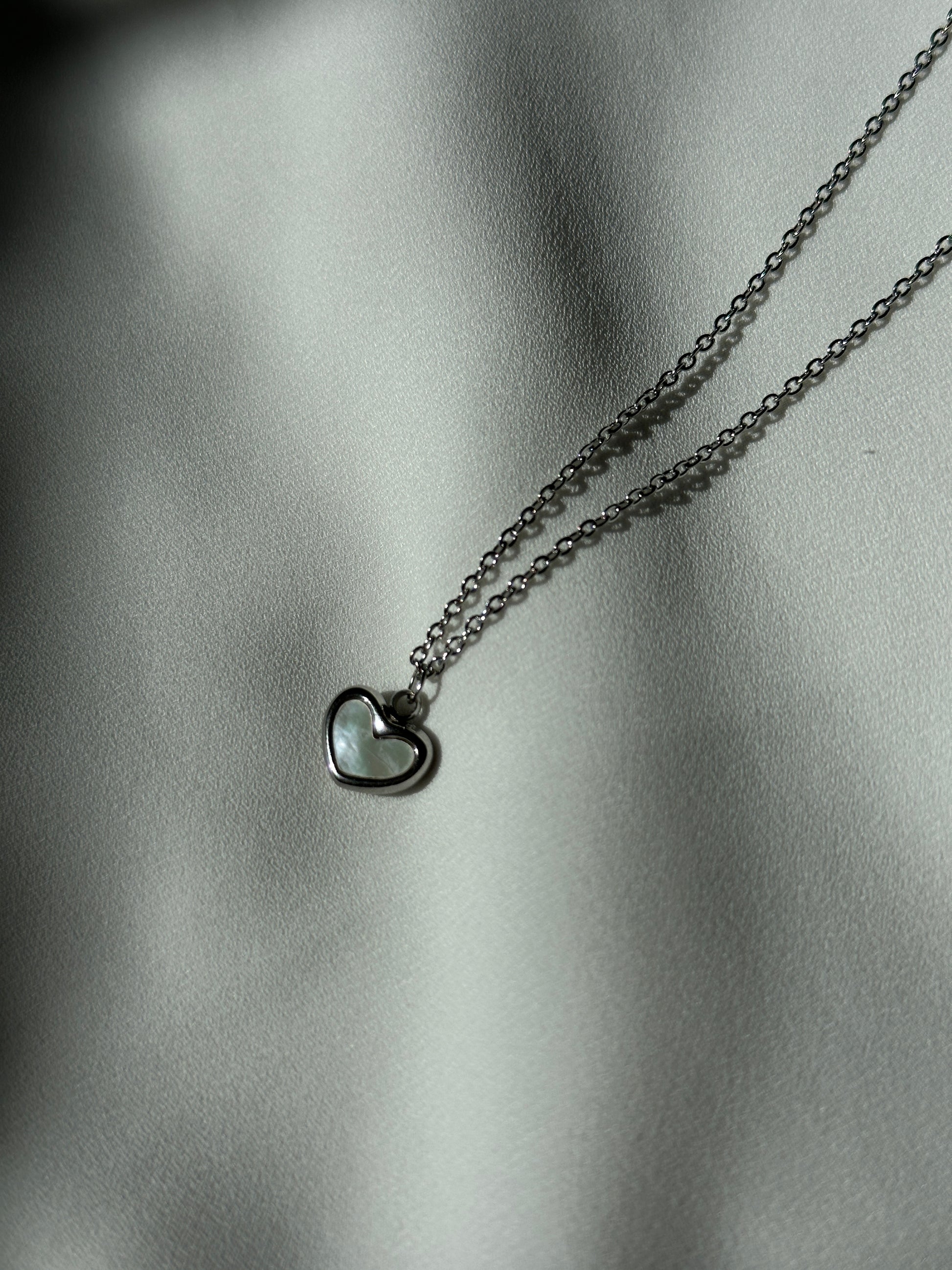 Silberne Edelstahlkette mit einem kleinen Herzanhänger. 🤍